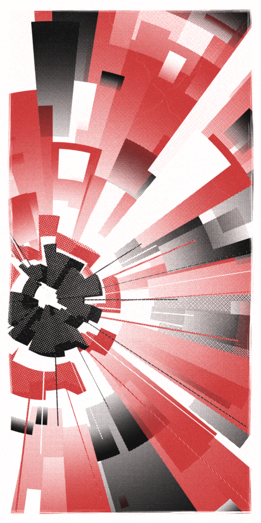 The muon in the hole February 8, 2024 Special collection for #fxhashturnsone. Halftones, dynamic composition and contrasts. Procedural realtime javascript / webgl.